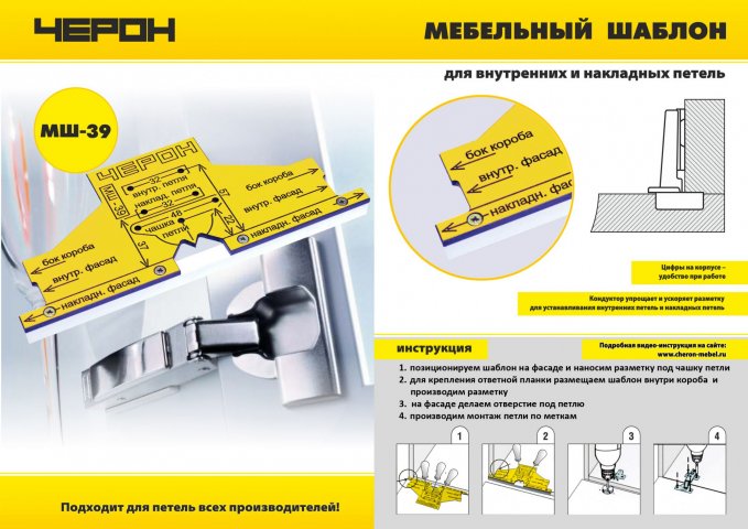 МШ-39, мебельный шаблон для внутренних и накладных петель