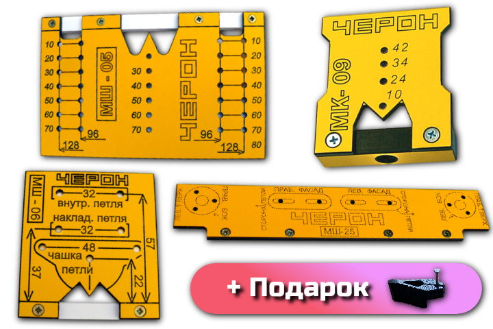 Набор мебельных шаблонов от Черон представляет собой комплект инструментов для удобной разметки на листовом материале, как ЛДСП, ДВП, мебельный щит, фанера и прочее. Это специальные приспособления, которые предлагают точность и удобство при установке и соединении различных деталей мебели. В наборе четыре модели - МШ-06, МШ-05, МШ-25, и МК-09.